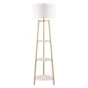 Add warmth and function to any room with this modern floor lamp featuring faux marble shelves and a fabric shade. Perfect for reading or ambiance, it offers extra space to hold books, drinks, or décor. The sturdy gold metal frame, anti-scratch pads, and adjustable lighting make it a stylish, practical choice for bedrooms or living areas.