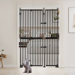 - EFFECTIVE FOR CATS: Up to 75” high gate can sufficiently stops jumper cats. Less than 1.4” narrow bar spacing stop kittens from squeezing through. Two latches with secure locks, could be clipped to different heights on the door, no smart kitties are able to figure all out.