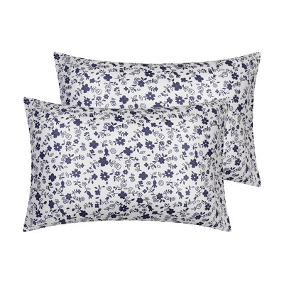 Unique Bargains 100% Cotton Floral Pillowcase with Envelope Closure for Hair and Skin Set of 2 Navy Blue Queen (20"x30")