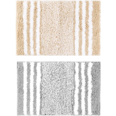 2 pcs bath mats. Durable and stylish bathroom rug, made with thick and colorful striped chenille fabric. This rug is the perfect addition to any bathroom or entryway, providing a soft and absorbent surface for wet feet and preventing slips with its anti-skid design. Its chenille materials ensure long-lasting use and easy cleaning. A good floor mat can make your home life better. You can also use it as a gift for family and friends.