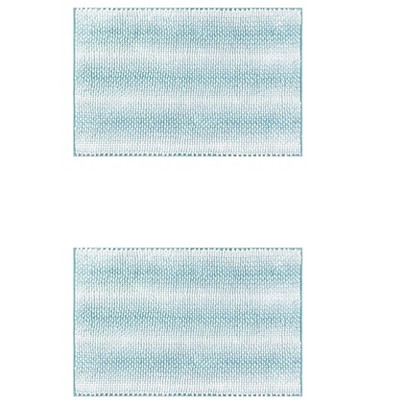 Unique Bargains Chenille Striped Soft Plush Non-Slip Shaggy Bathroom Rug Mat 2 Pcs Green 16" x 24"/20" x 32"