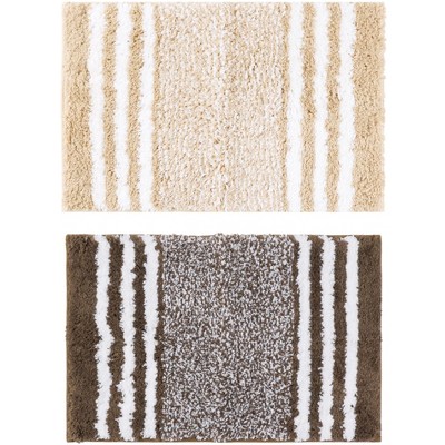Unique Bargains 2 Pcs Striped Microfiber Extra Soft and Absorbent Fluffy Non-Slip Bathroom Floor Mats