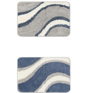 Unique Bargains 2 Pcs Wavy Stripes Non-Slip Absorbent Bath Mat for Bathroom Shower