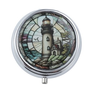 Unique Bargains 3 Grid Round Lighthouse Pill Case Black 1 Pc