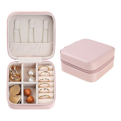 Unique Bargains 3 Layer Women PU Leather Jewelry Organizer Case with Drawer Light Pink