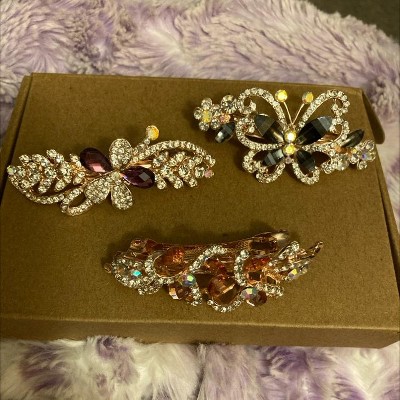 Unique Bargains 3 Pcs Hair Clips Hair Accessories for Women Hair Barrettes Sparkly Rhinestones Hairpin Multicolor