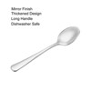 Made of 410 stainless steel, this spoon features a smooth surface, scratch-resistant edges. Its thickened design resists deformation, makes it durable, and is rust- and corrosion-resistant. It's easy to clean and dishwasher-safe. The handle is comfortable to hold and easily reaches deep bottles or jars. This metal spoon is designed for everyday use, such as stirring liquids or transferring solids or powders in the kitchen, at home, in the laboratory, at restaurants, and at teahouses.