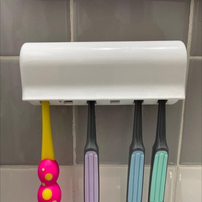 Unique Bargains 6 Capacity Plastic Wall Mount Stand with Sticker Toothbrush Holder 5"x 1.5" x 2"L*W*H White 1 Pc