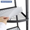 This kitchen corner shelf is made from carbon steel, oil-resistant, corrosion-resistant, and not easy to scratch, sturdy and durable, lasting for long-term use. Good load-bearing capacity, heavy lifting, firm, and stable. Each layer of the corner rack can store many pots and pans. The fan-shaped design maximizes the use of corners. The height between each shelf is adjustable to fit most kitchen utensils. This kitchen corner rack is in one package, anyone can complete the installation within a few minutes. This kitchen storage rack can organize different sizes of air fryers, lids, pots, pans, baking pans, serving trays, cookware, etc. This rack can be used as a pot, vegetable, and fruit rack.