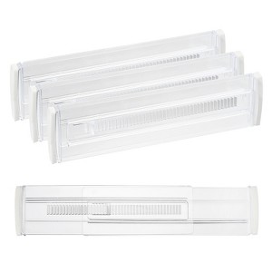 The expandable drawer dividers can be installed in various drawers such as kitchens, bedrooms, and offices. They are essential for storage and classification. Made of ABS plastic, these dividers are sturdy and durable, featuring an adjustable design that allows them to stretch to the required length for different drawer types. Foam sponges on both sides prevent scratching of drawer walls. Ensure to check the size before purchasing.