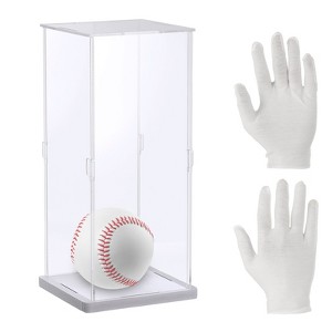 Sturdy material creates a transparent display cabinet that can showcase items inside. The bottom features a thickened base for stability and durability, making it easy to move and stack. The display box includes easy-to-assemble tenons, allowing for assembly without rivets and glue. Gloves are provided to protect both hands and the display box during assembly. This box offers excellent protection for collections, preventing dust, damage, sunlight exposure, and yellowing. It is suitable for home display, tabletop decoration, or showroom use, making collections more eye-catching.