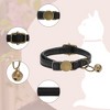 Item Function: 1. Easily customize the fit for your cat collar breakaway for your cat's comfort and safety. Prevents choking incidents during outdoor adventures. 2. Made from sturdy PU material that can withstand everyday wear and tear, ensuring long-lasting use for your cat collars. 3. Each cat collar with bells comes with a copper removable bell and copper color metal buckle for a good combination of ultimate comfort and retro design aesthetics. 4. Features a secure buckle closure to keep the kitten collar in place without causing any uncomfortable to your pet. 5. Stand out with this vibrant color that adds a fashionable touch to your cute cat collar without compromising on safety. Specifications:
