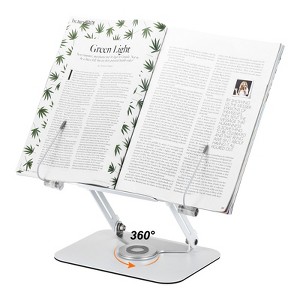 - Adjustable book stand with 360° rotating base for optimal viewing angle