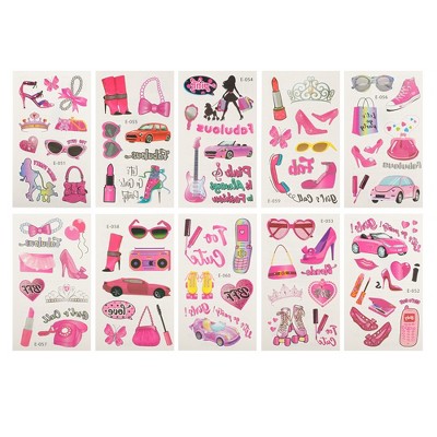 Unique Bargains Halloween Christmas Adult Realistic FlowerFake Tattoos Pink 10 Pcs