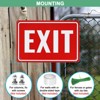 This reflective exit sign is versatile and can be used in a variety of settings including outdoors, homes, businesses, yards, doors, walls, fences, posts, poles, sidewalks, and roads. Made from durable aluminum, the sign is anti-rust and waterproof, ensuring long-lasting use. It features four pre-drilled holes and rounded corners for easy installation. The reflective surface makes the sign visible in low-light conditions as it illuminates when struck by light from headlights or other sources, ensuring the message is clear even in the dark.