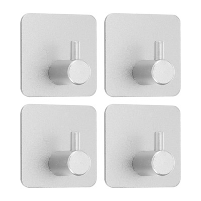 Unique Bargains Aluminum Self-Adhesive Rust-proof Bathroom Kitchen Towel Hooks 4 Pcs