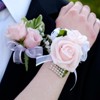 The rose wrist is a versatile wrist decoration, suitable for weddings, prom, dinners, festivals, DIY crafts, graduations, celebrations, parties, celebrations, etc. Suitable for girls, brides, bridesmaids, and men. By choosing the right flowers, color scheme, and design style, artificial flower wristbands can coordinate with one's outfit and event theme to express a unique style and personality. Advantage: The wrist corsage has ribbons to fit most sizes. The wrist corsage set of flowers has a beautiful appearance and is light in weight. They allow for easy movement and do not prevent the wearer's ability to dance or communicate during the event. Flower wrist corsage boutonnieres are composed of carefully selected artificial flowers, rhinestones, pearls, and other decorations. They are an indispensable element of the wedding, adding a romantic and warm atmosphere to the entire wedding. Instruction: Choose the right rose bridesmaid wrist boutonnieres. Put on the wrist corsage. NOTE: Prom wristlet corsage may be squeezed in transport for a long time. You can adjust the shape of the flowers to make them spread out.