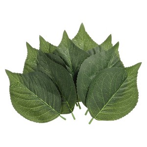 These artificial silk hydrangea leaves are ideal for enhancing flower arrangements and creating wedding bouquets, wreaths, DIY crafts, bookmarks, or home party decorations. They can also be used as ornaments on bedside tables, desks, and living room shelves, adding a touch of sophistication and elegance. Made from silk cloth with a shiny look, these leaves have a wrinkle-resistant texture that won't fade or wither, ensuring long-lasting appeal. Their natural and realistic appearance makes them a great addition to any flower arrangement, home decor, or arts and crafts project, providing a touch of freshness and life. These leaves have a wire inset to keep them upright and can be paired with any flower to create a bouquet or placed alone in a vase for decoration. Handle with care to maintain their lifelike appearance, and note that there may be a slight color difference due to natural lighting and display resolution.