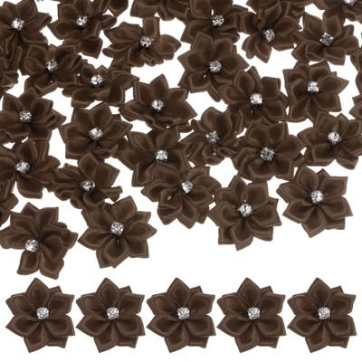 Unique Bargains Artificial Satin Durable Flexible Decorative Mini Ribbon Flowers with Rhinestones 1.2 Inch 100 Pcs