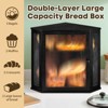 The spacious interior of this double-layer bread container can be used not only to hold bread and other baked goods, but also to store fruits, spices, coffee, tea, bowls, and other kitchen utensils. The top of the bread box provides additional storage space for placing other items, effectively preventing items from slipping off easily. Crafted from natural bamboo with a waterproof finish, this sturdy box resists cracking and odors. Features smooth, burr-free handles and a secure magnetic closure for effortless use and optimal freshness protection. The dual-door design features crystal-clear acrylic panels that minimize opening frequency. Made from durable, shatter-resistant material, it's both safe and practical for daily use. The airtight seal of the bread container ensures that your bread stays fresh and flavorful for longer periods. A see-through window is built and allows for a clear inside view. This keeps you updated on whether you need to buy or bake more and prevents your bread from getting any unnecessary air when you just want to check out your options. The bread bin can also serve as a versatile organizer for other items such as snacks, fruit, and potatoes. It comes with all the parts and detailed instructions needed to assemble it so you can do it on your own! Best gift idea during various festivals for someone who loves to bake or needs storage.