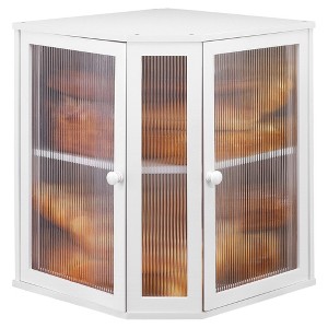 Unique Bargains Bamboo Acrylic Wavy Double Door Panel Large Corner Bread Container White