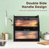 Crafted from natural bamboo with a waterproof finish, this sturdy box resists cracking and odors. Features smooth, burr-free handles and a secure magnetic closure for effortless use and optimal freshness protection. While standard bread boxes hold just one loaf, the spacious two-tier design accommodates bread, rolls, bagels, muffins, and more - keeping everything organized and preventing crushing. Perfect for busy households looking to reduce kitchen clutter. This bread holder retains enough moisture to keep most breads fresh for up to 3 or 4 days. The top with a fence design of the bread box provides additional storage space for placing other items, effectively preventing items from slipping off easily. The dual-door design features crystal-clear acrylic panels that minimize opening frequency. Made from durable, shatter-resistant material, it's both safe and practical for daily use. Beyond bread storage, this versatile box neatly stores coffee, tea, snacks, fruits, and vegetables. Its compact footprint saves counter space while adding warm elegance to your kitchen decor.