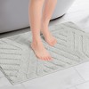 Non-slip Bath Mat: The bathroom mat features a robust and enduring nonslip backing, designed to prevent shifting or skidding. The anti-slip bath mat will keep it firmly in place, it's more safe and cozy. Please place the bathroom rug on a dry smooth floor.
