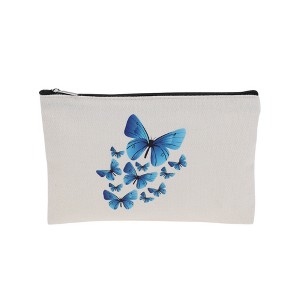 Unique Bargains Blue Butterfly Makeup Bag White 1 Pc