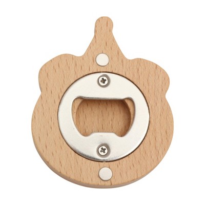 Unique Bargains Bottle Opener Magnetic Wood Square Handle Magnet Wood Light Brown 2.36"x3.35"x0.47" 1 Pcs Square Bottle Opener With Handle Spotted Cat