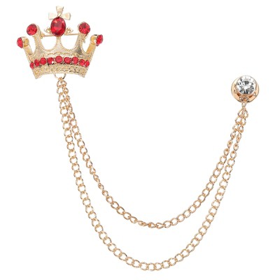 Unique Bargains Bouquet Coat Hat Bag Hanging Fashion Round Gem Tassel Chain Brooch Pins 1 Pc Gold Tone (Red)