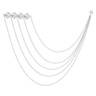 Unique Bargains Bouquet Coat Round Rhinestone Hanging Tassel Chain Lapel Suit Brooch Pins 1 Pc