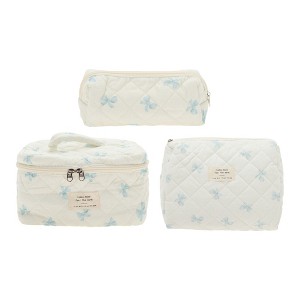 Unique Bargains Bow Handheld Quilting Makeup Bag Set 3 Pcs