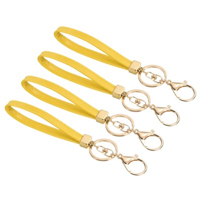 Unique Bargains Braided PU Leather Keychain with Stainless Steel Key Ring Golden