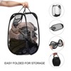 The laundry hamper is made of polyester and a steel frame, compact and portable, reliable and breathable, not easy to fade, rust, wear, or break, ensuring longer life. The mesh hamper is equipped with a breathable mesh that allows air to circulate, which minimizes the smell of dirty clothes. This laundry hamper adopts a collapsible design. When not in use, it can be folded up or closed up and kept in the cabinet to save space in your laundry room or closet. The mesh laundry hamper is designed with reinforced handles, is collapsible, and convenient to take away or store. Easily holds up to 50 lbs and lasts longer. You can place underwear, socks, towels, T-shirts, dresses, sporting goods, etc. This mesh hamper is suitable for laundry, bedroom, bathroom, kitchen, and clothes storage.