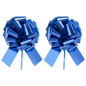Unique Bargains Bright Durable Metallic Gift Wrapping Large Pull Bow for Wedding 2 Pcs Blue 12 inch