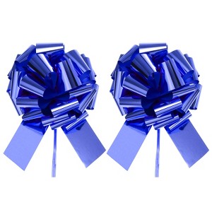 Unique Bargains Bright Durable Metallic Gift Wrapping Large Pull Bow for Wedding 2 Pcs Blue 20 inch