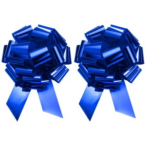 Unique Bargains Bright Durable Metallic Gift Wrapping Large Pull Bow for Wedding 2 Pcs Blue 24 inch