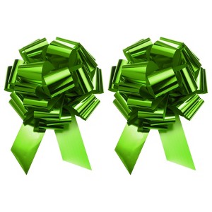 Unique Bargains Bright Durable Metallic Gift Wrapping Large Pull Bow for Wedding 2 Pcs Lawn Green 18 inch
