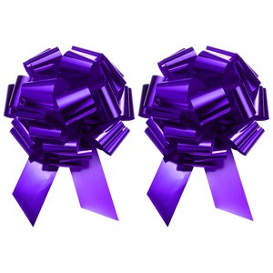 Unique Bargains Bright Durable Metallic Gift Wrapping Large Pull Bow for Wedding 2 Pcs Purple 24 inch