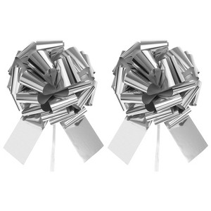 Unique Bargains Bright Durable Metallic Gift Wrapping Large Pull Bow for Wedding 2 Pcs Silver 12 inch