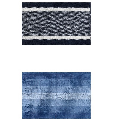 Unique Bargains Chenille Striped Machine Washable Non-Slip Soft Plush Shaggy Bathroom Rug Mat 2 Pcs