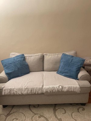 - The sofa's decorative pillow covers are chenille designed with an invisible zipper