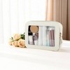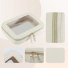 Features: This makeup travel bag offers ample capacity for your cosmetics or toiletries, good for commuting or travel convenience. Crafted from good-quality PU leather, makeup case combines style and durability. Meticulous stitching and smooth metal zippers showcase refined craftsmanship. The outer layer of this makeup organizer bag features excellent waterproof properties, protecting contents from water. Easily wipe clean with a damp cloth to maintain its appearance. Designed for travel, the transparent window of this clear toiletry bag allows quick access to essentials while organizing items like earphones and chargers. Its size fits effortlessly into luggage for organized storage. This cute make up bag is a stylish and practical gift for any occasion. Ideal for trend-conscious individuals and practical elders, it conveys heartfelt sentiments when surprising friends, partners, or family members. Specifications: Material: PU, PVC, Package List: 1 Pc Clear Makeup Bag.