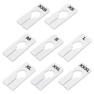 These clothes dividers help keep your wardrobe and closet in perfect order, allowing you to organize clothing or any items tidily. Made from sturdy plastic, they are lightweight, portable, and durable. The dividers feature a slot opening for easy securing, helping you build an efficient storage system. Sizes are marked on the surface of each dividing ring, enabling quick distinction between different clothing sizes. Simple to use, just open the slot and fix it on the closet rack. A perfect accessory to enhance and organize your closet.