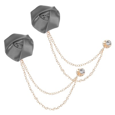 Unique Bargains Cloth Flower Lapel Pin with Gold Badge Tassel Chain Brooches 1.57 inch 1 Pc Light Grey