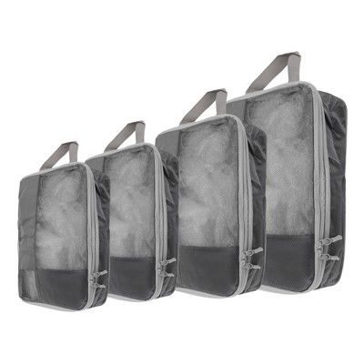 Space-saving Solution: These compression packing bags are designed to maximize luggage space by compressing clothing and essentials, allowing you to pack more efficiently for your travels. The innovative compression technology reduces bulk while keeping items organized. Durable Construction: Made from quality polyester materials, these packing bags offer durability and longevity for frequent use. The sturdy construction withstands the rigors of travel, ensuring that your belongings remain protected and secure throughout your journey. Expandable Capacity: Featuring an expandable design, these packing bags can be adjusted to accommodate varying amounts of clothing or accessories. Whether you need to pack light or carry extra items, the flexibility of the bags allows for versatile packing configurations.Organized Travel: Keep your belongings neat and tidy with these organizers that help separate and categorize different items in your luggage. The compartments and dividers enable efficient organization, making it easy to access specific items without rummaging through your bag. Specifications: Material: Polyester; Small Size: 18x9x24cm / 7.09"x3.54"x9.45"(L*W*H); Medium Size: 21x9x30cm / 8.27"x3.54"x11.81"(L*W*H); Large Size: 27x9x35cm / 10.63"x3.54"x13.78"(L*W*H); Extra Large Size: 29x9x40cm / 11.42"x3.54"x15.75"(L*W*H); Package List: 1 Set Compression Packing Bags.
