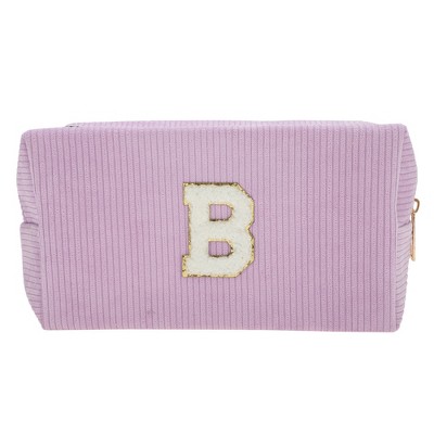 Unique Bargains Corduroy Rectangular Letter Makeup Bag Pink 1 Pc