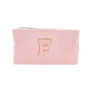 Unique Bargains Corduroy Rectangular Letter Makeup Bag Pink 1 Pc
