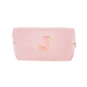 Unique Bargains Corduroy Rectangular Letter Makeup Bag Pink 1 Pc