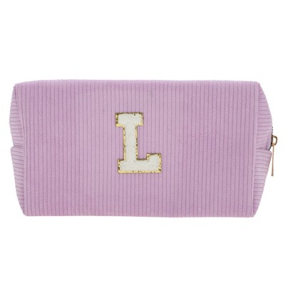 Unique Bargains Corduroy Rectangular Letter Makeup Bag Pink 1 Pc